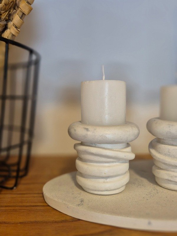 Candelabro realizado en concreto. Para velas de 5cm de diámetro.