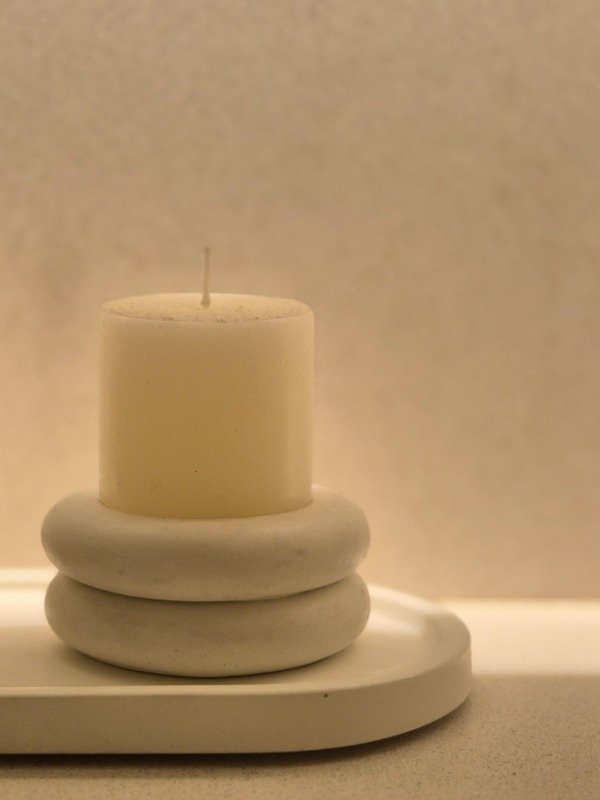 Candelabro para velas de hasta 5cm de diámetro realizado en concreto.