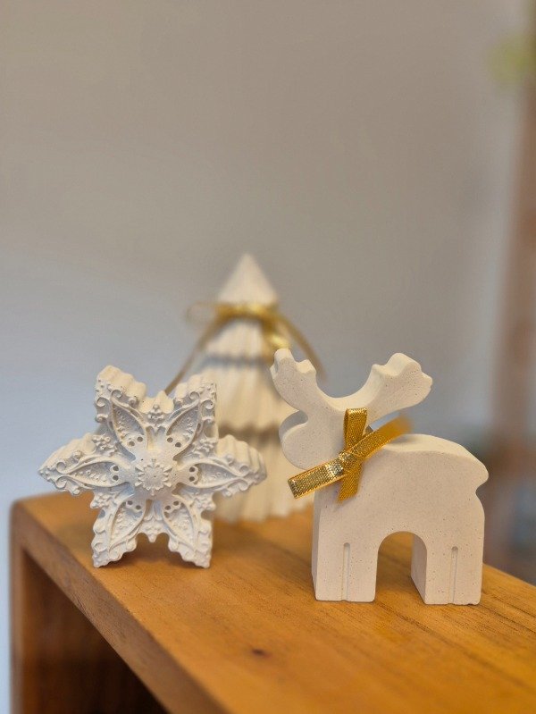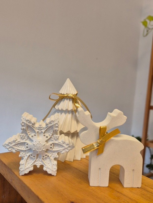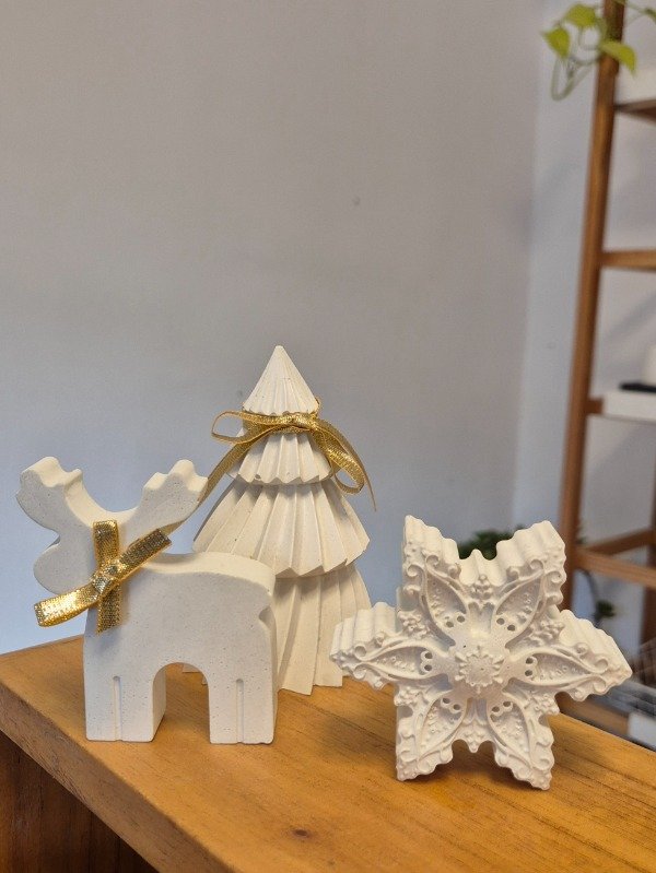 Set de 3 adornos navideños en concreto blanco