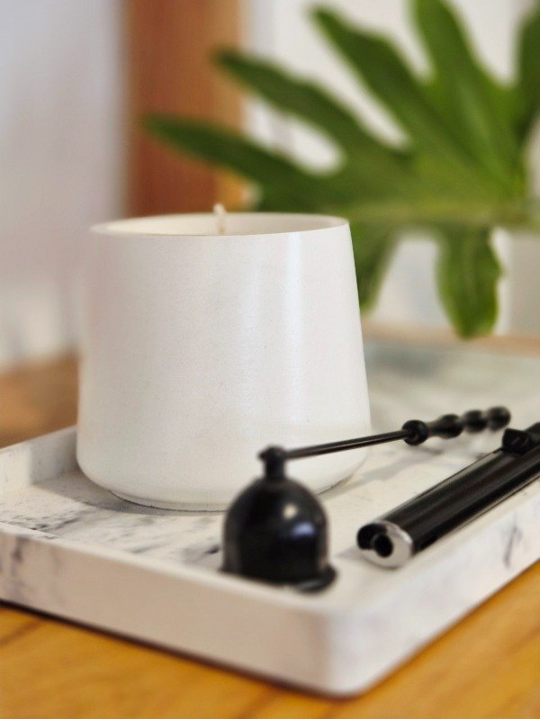 -Vela de cera de soja aromática en envase de concreto blanco de 200cc.