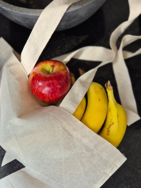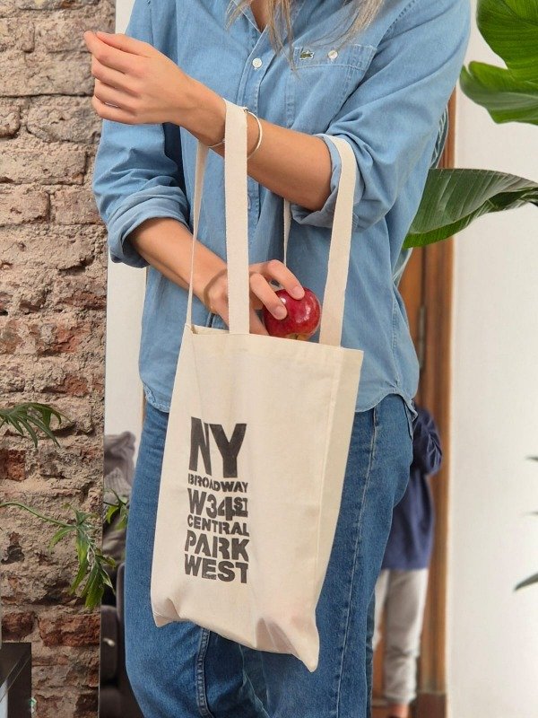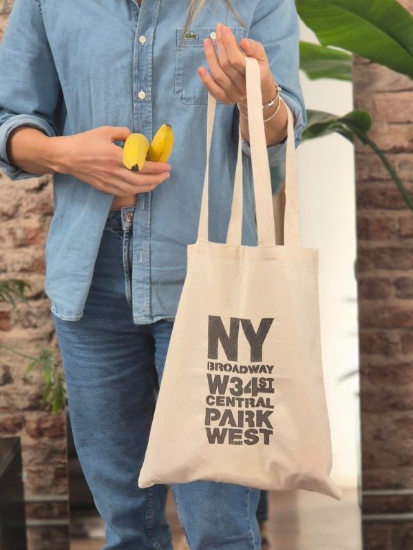 Bolsa de lienzo con manijas de algodón, estampada por serigrafía.
